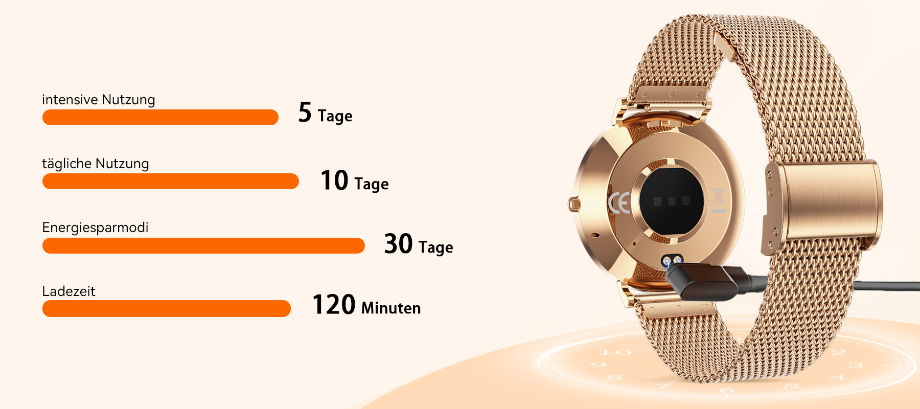 Langi Batterielaufzyt & schnells Uflade: Gnüssi bis zu 3-5 Täg Nutzigszyt mit einer einzige Ladig. Nume 15 Minute magnetischs Schnelläde git e volle Tag Power.